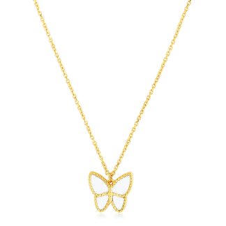 14k Yellow Gold High Polish Butterfly Peral Paste Necklace