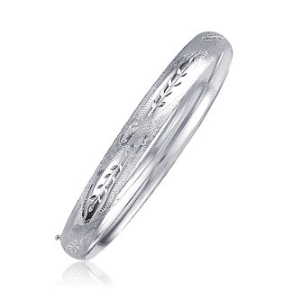 Classic Floral Carved Bangle in 14k White Gold (6.00 mm)
