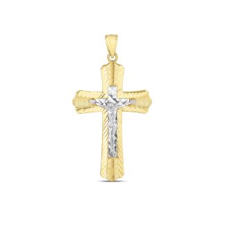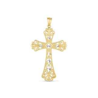 14k Two-Toned Yellow and White Gold Textured Cross Pendant