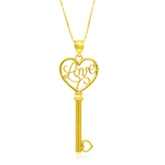 14k Yellow Gold Skeleton Key Style LOVE Pendant