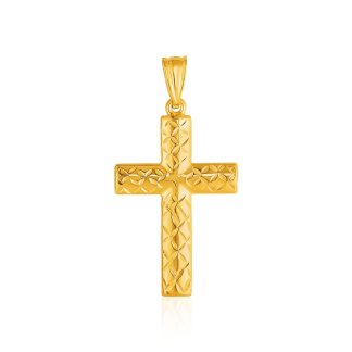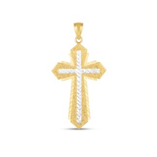14k Two Tone Gold High Polish Diamond Cut Cross Pendant