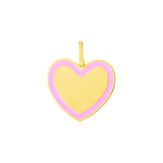 14k Yellow Gold and Pink Enamel Heart Pendant