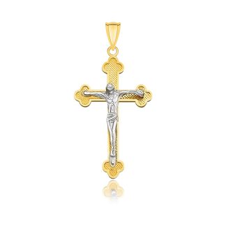 14k Two-Tone Gold Small Budded Style Cross with Figure Pendant