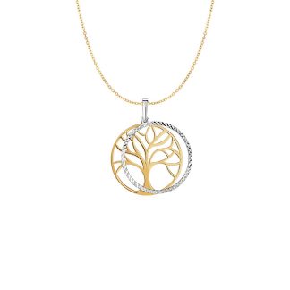 14k Two-Tone Yellow and White Gold Tree of Life Pendant