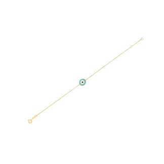 14k Yellow Gold Blue Evil Eye Bracelet (1.00 mm)