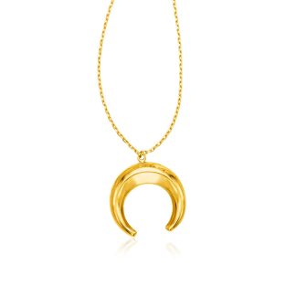 14k Yellow Gold 17 inch Necklace with Domed Moon Motif Pendant