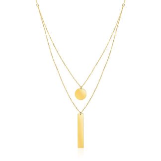 14k Yellow Gold 18 inch Two Strand Necklace with Circle and Bar Pendants
