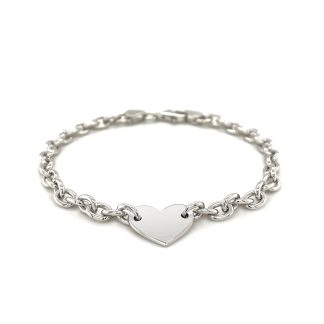 Sterling Silver Rhodium Plated Chain Bracelet with a Flat Heart Station(5.00 mm)
