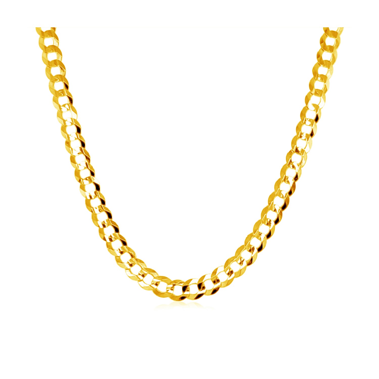 This curb link chain comes in 10k yellow gold and has a width of 3.60 millimeters.