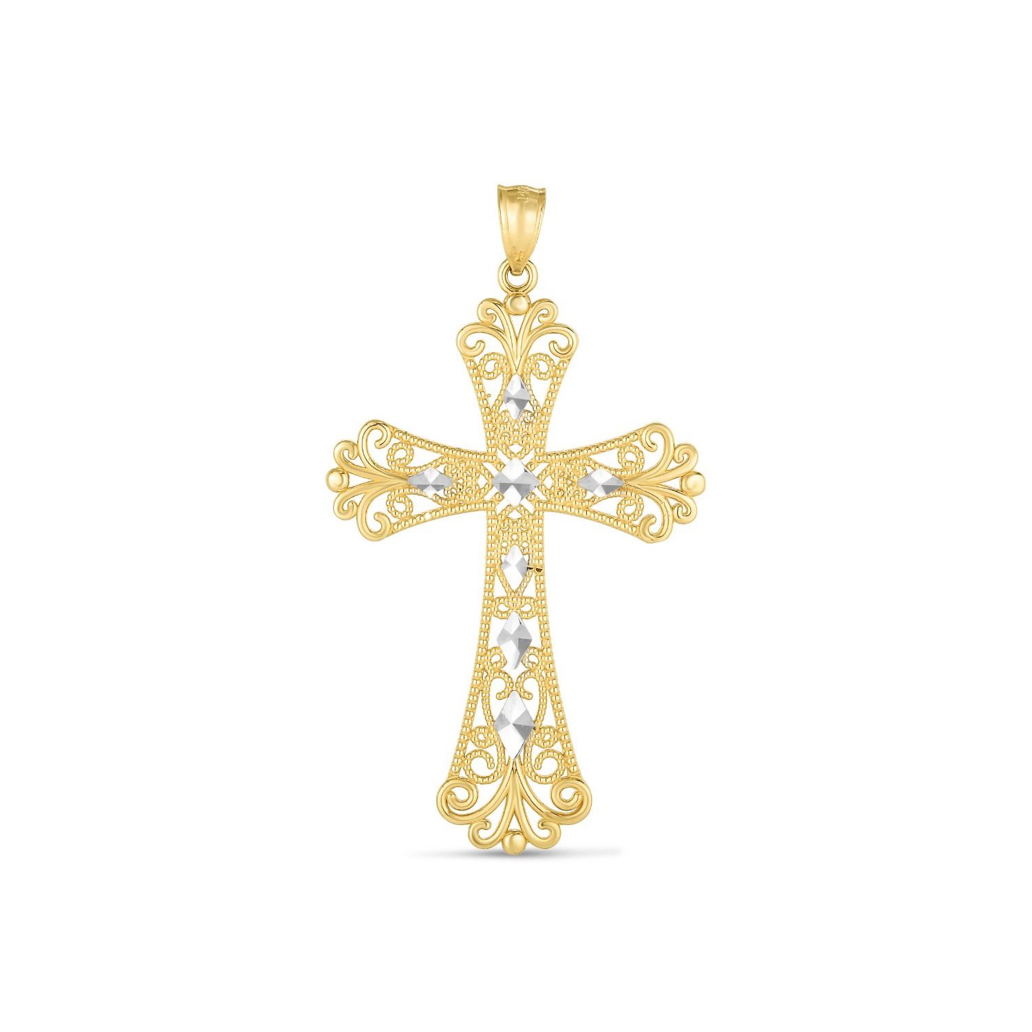 14k Two Tone Gold High Polish Diamond Cut Cross Pendant