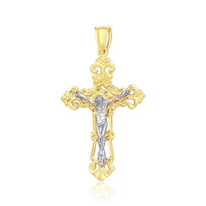14k Two-Toned Yellow and White Gold Textured Cross Pendant