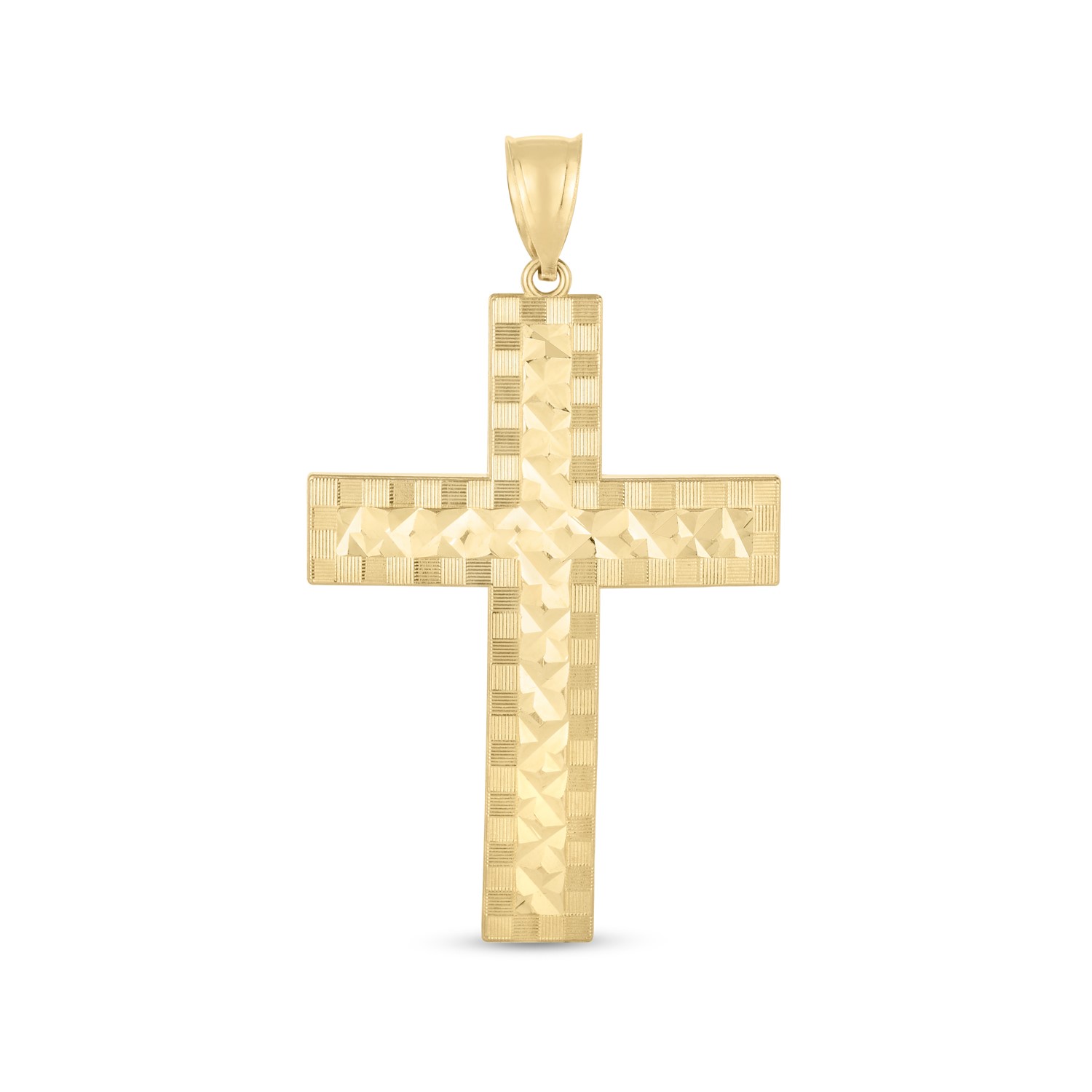 14k Yellow Gold High Polish Diamond Cut Cross Pendant