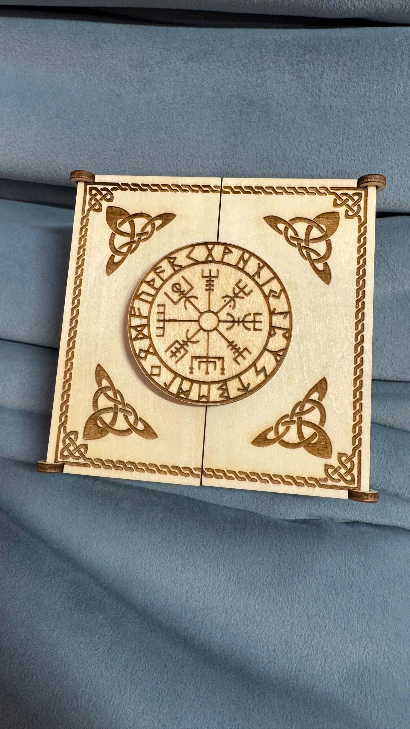 A striking Viking-patterned gift box, laser-engraved on wood and meticulously hand-assembled — made to impress from the very first glance.