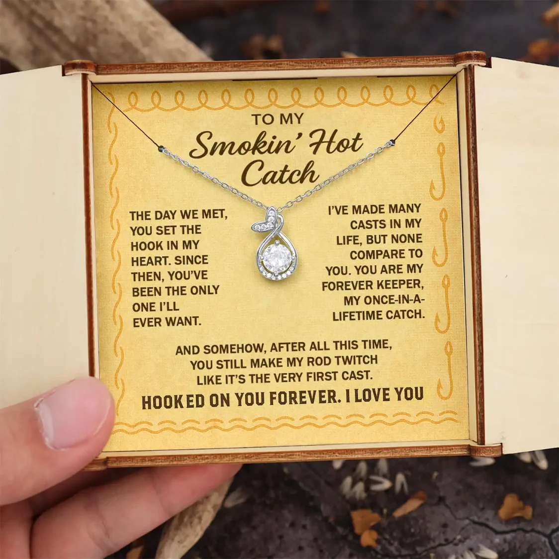 This necklace is simply perfect for her. The message really speaks to our love and my passion for fishing.