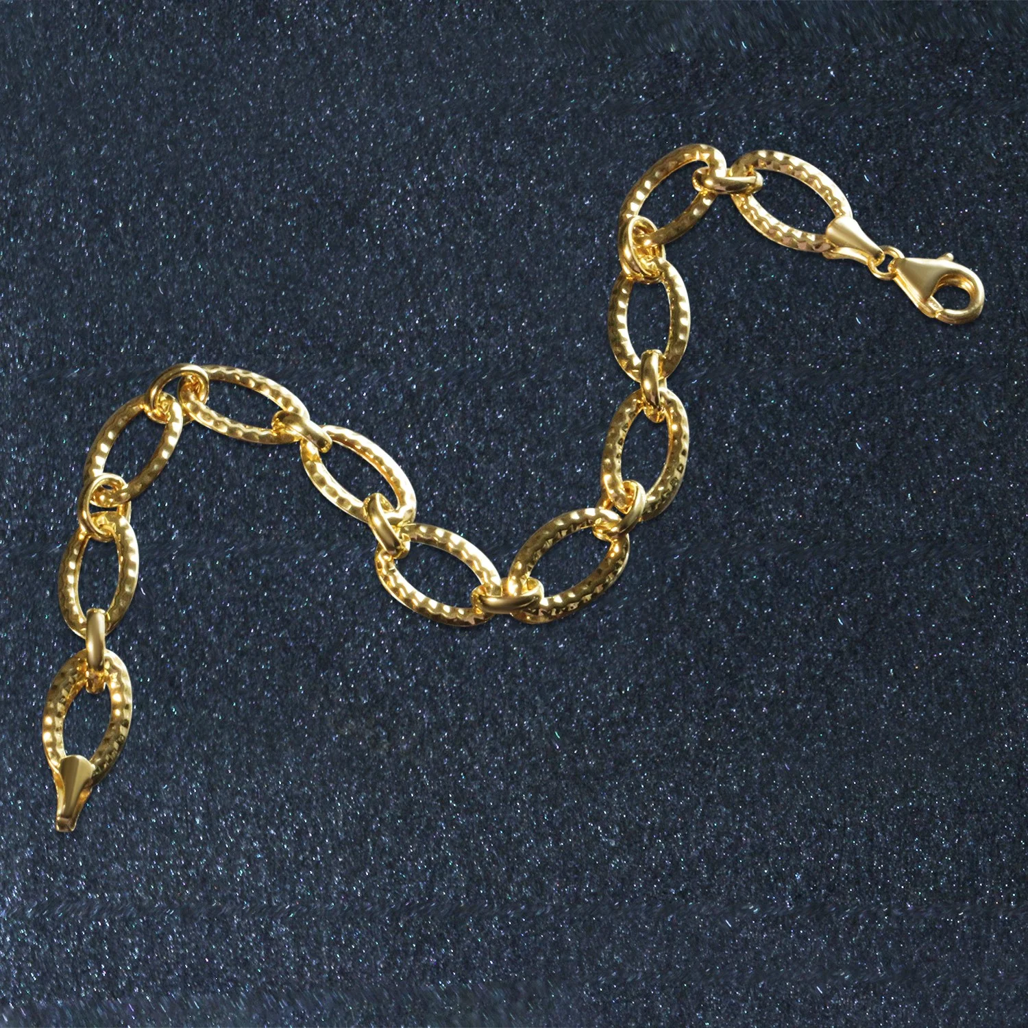 Texture and shine combine in this update to a classic gold oval link bracelet. Bracelet is 7 1/4 inches long and closes with a lobster clasp.